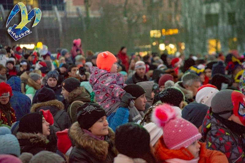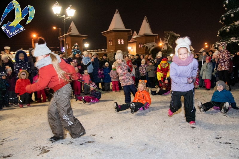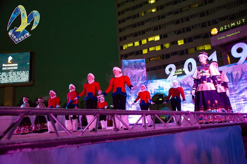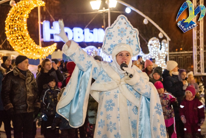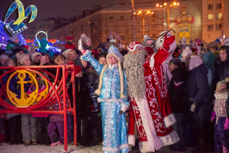 На сцене друг друга сменяли танцевальные и вокальные коллективы, зрителей встречали привычные персонажи праздника – Дед Мороз и Снегурочка. Поздравил северян с наступающим праздником и глава администрации города Мурманска Андрей Сысоев.