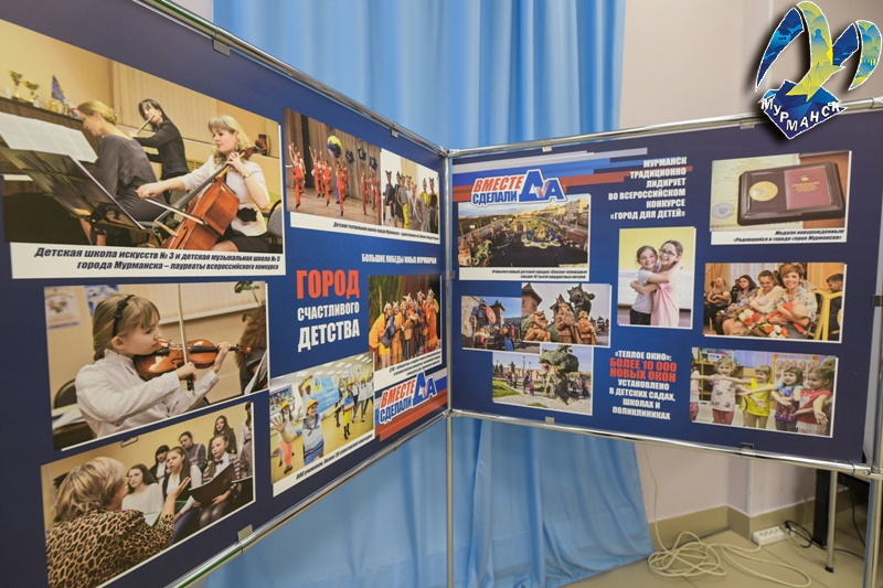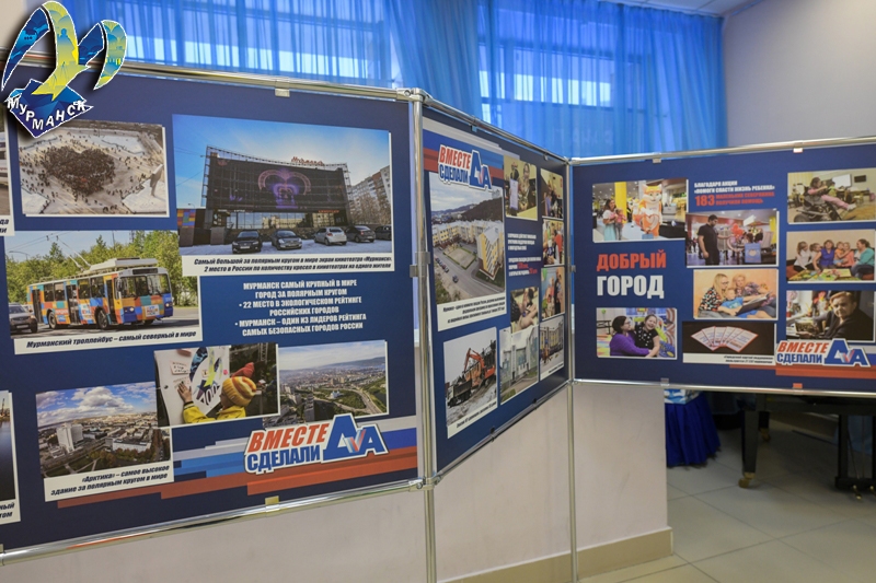 Выставка затрагивает различные сферы жизни Мурманска: благоустройство, развитие дополнительной инфраструктуры, реконструкция парков и скверов, модернизация и строительство спортивных объектов, успехи мурманского образования.