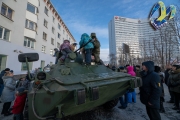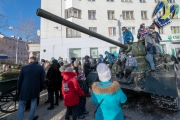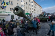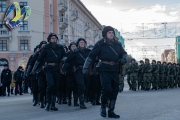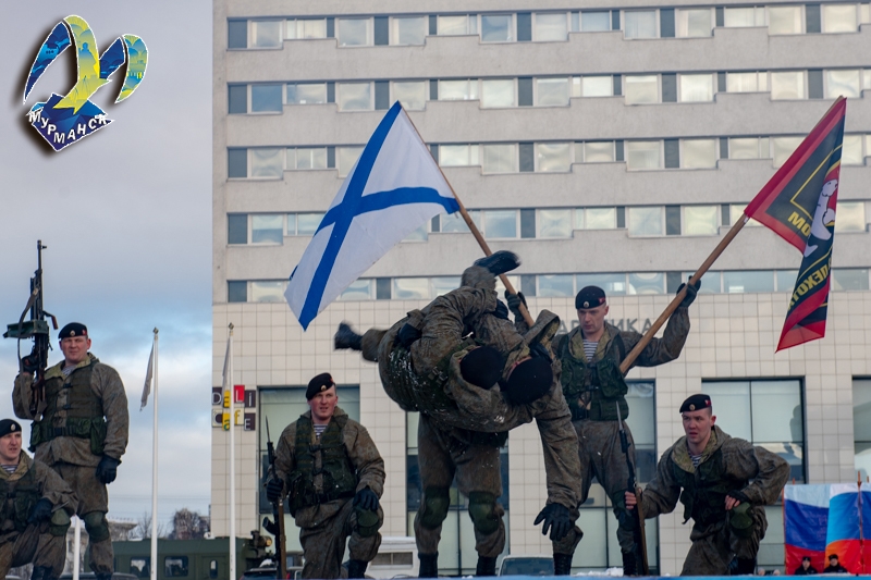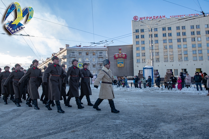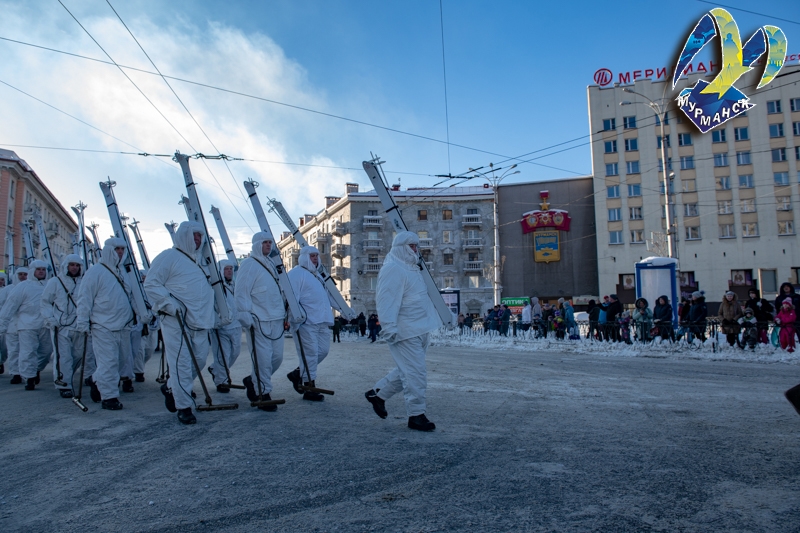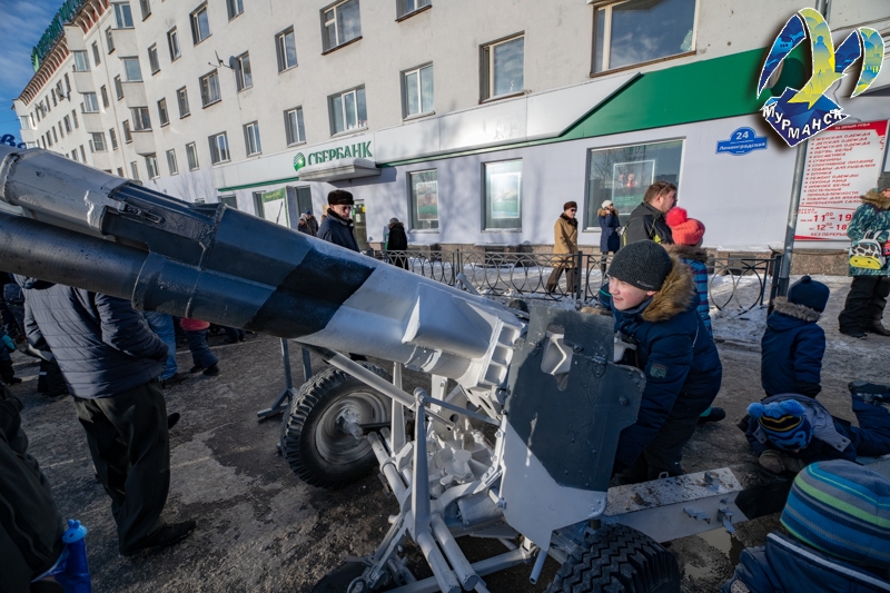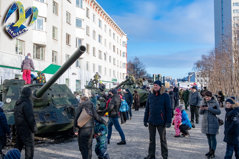 Открылся праздник строевым маршем военнослужащих 14-го армейского корпуса Северного флота в сопровождении военного оркестра, которые прошли по центральному проспекту города. На улице Ленинградской для всех пришедших работала выставка военной техники. Мурманчане и гости заполярной столицы смогли познакомиться с боевой техникой разных поколений, от легендарных Т-34, Су-100 и тачанки до современных ракетных комплексов «Панцирь-С», «Бастион» и С-300.