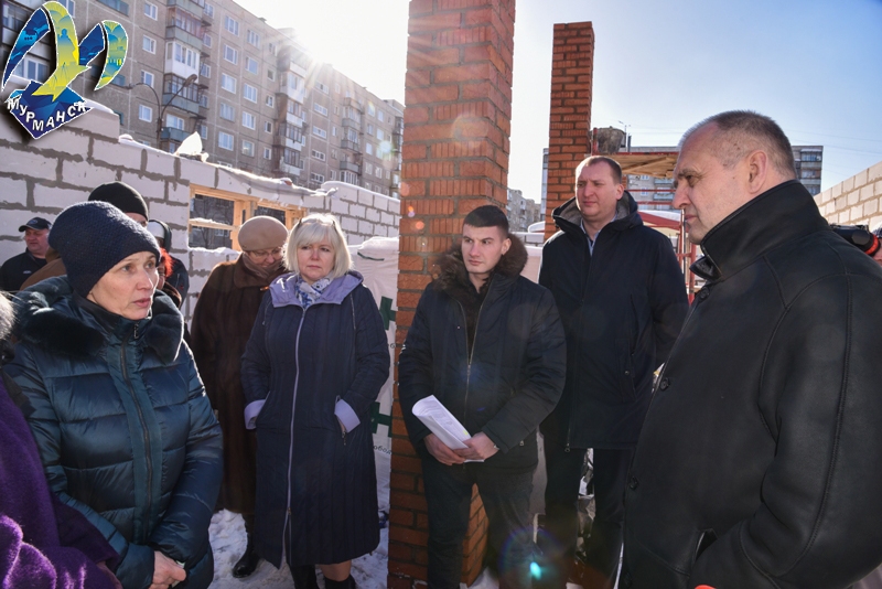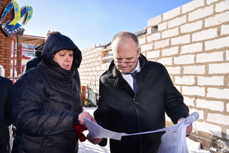 Сегодня глава администрации города Мурманска Андрей Сысоев проверил ход работ по строительству нового корпуса мурманской детско-юношеской спортшколы №6 на стадионе «Льдинка» (Беринга, 14а).