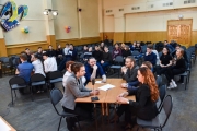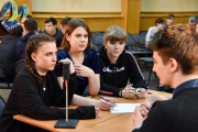После небольшого мастер-класса в интеллектуальный бой вступило шесть команд. Чтобы ответить на вопросы, которые подготовили для ребят «Норманны», одной школьной программы явно недостаточно. Участникам надо было проявить всю свою эрудицию. Например, один из вопросов звучал так: «Поэт Расул Гамзатов написал стихотворение „Журавли“, которое легло в основу одноименной знаменитой песни. Тема журавлей была навеяна посещением расположенного в этом городе памятника. Назовите этот город». Над правильным ответом — Хиросима — умникам пришлось поломать голову.