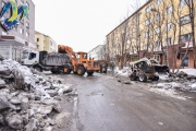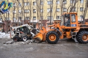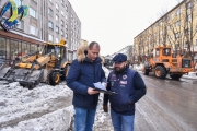 Сегодня одним из мест уборки стала улица Дзержинского. Традиционно это один из наиболее сложных участков, здесь всегда припарковано огромное количество автотранспорта. Стоит отметить, что во время снегоуборочных работ дежурят сотрудники ГИБДД, которые в случае необходимости разыскивают владельцев автомобилей и просят их переставить свои машины на соседние улицы.