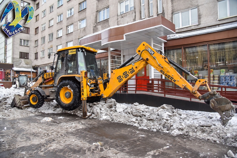 В Мурманске продолжается комплексная уборка городских улиц. Сотрудники муниципального учреждения «Управление дорожного хозяйства» очищают от снега тротуары, проезжую часть, остановочные комплексы и лестницы.