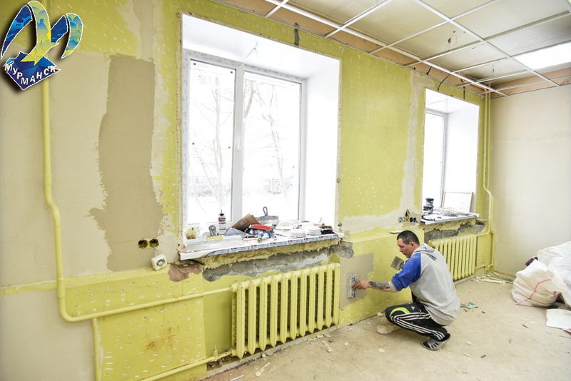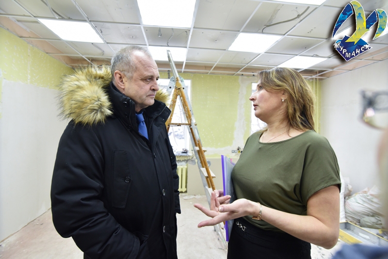 Сегодня глава администрации города Мурманска Андрей Сысоев в рамках традиционного объезда проверил ход ремонта в библиотеке-филиале № 12 Центральной детской библиотеки города Мурманска (ул. Баумана, 24).