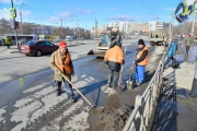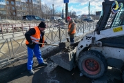 – Мы перешли к очередному этапу подготовки города. Сейчас выполняется целый комплекс работ. Основная задача этой недели – очистка зеленых зон от снега, – отметил директор муниципального учреждения Станислав Ланин. – Параллельно выполняется поддерживающий ремонт дорожного полотна – для этого организовано пять бригад, две из которых работают ночью.