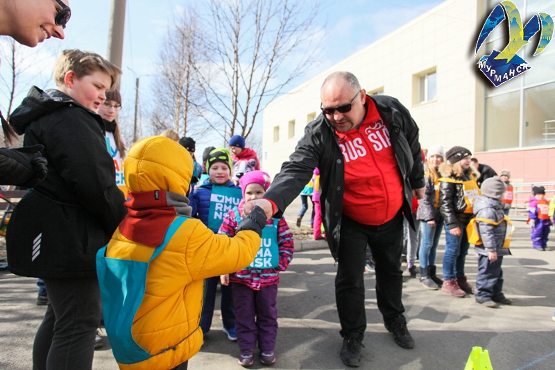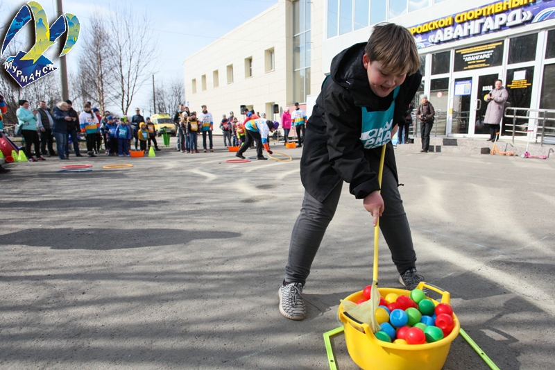 В эстафетах принимали участие мурманчане всех возрастов, вместе с мамами и папами дети соревновались в веселых стартах.