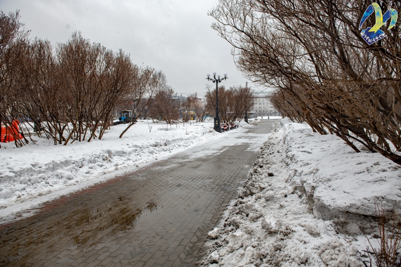 – Когда спадает мороз, мы в первую очередь стараемся убрать дорожки, - рассказал директор МАУК «Мурманские городские парки и скверы» Александр Накай. – В текущих погодных условиях лучше очищать их от снега и наледи до самой брусчатки, чем посыпать их песком, который, помимо прочего, плохо влияет на газоны и саженцы.