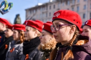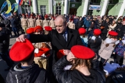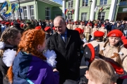 В рамках акции 60 школьников приняли присягу и вступили в ряды Всероссийского военно-патриотического движения «Юнармия». Береты и знаки отличия юнармейцам вручил Андрей Сысоев: