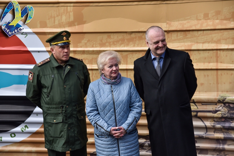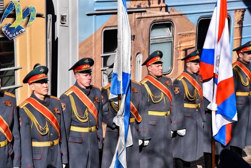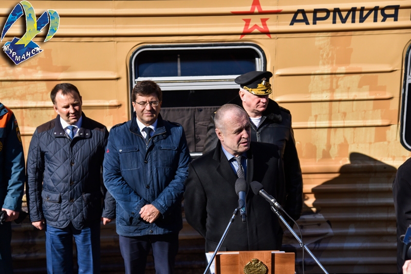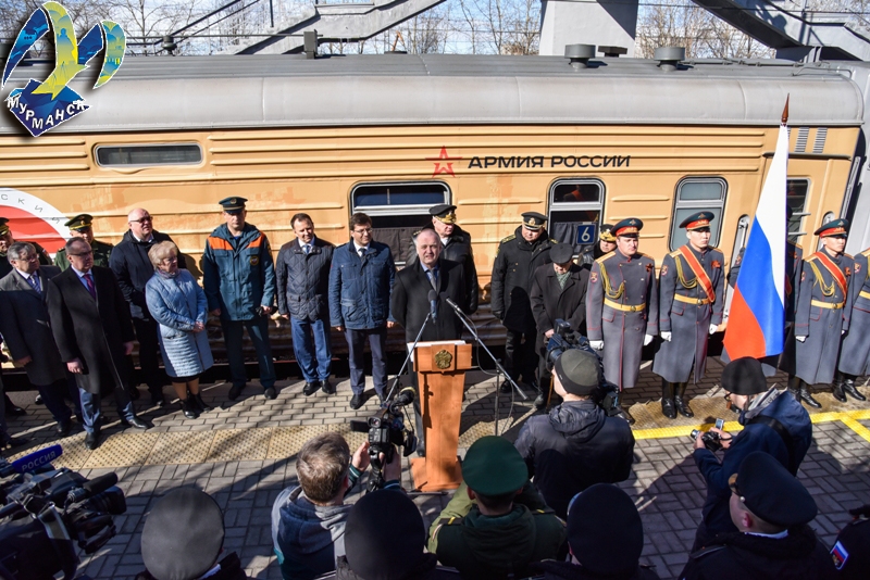 На торжественном митинге, посвященном прибытию эшелона с выставкой, выступили заместитель губернатора Мурманской области Евгений Никора, командующий Краснознаменным Северным флотом адмирал Николай Евменов, глава администрации города Мурманска Андрей Сысоев, ветеран Великой Отечественной войны Павел Лоснов и юнармеец Алексей Никитин.