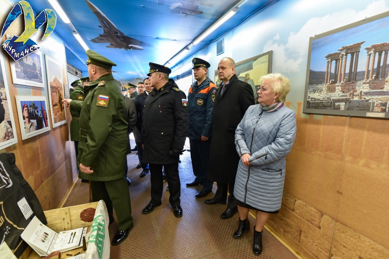 — Сегодня выставка «Сирийский перелом» достигла своей северной точки. Немалый вклад в разгром вооруженных бандитов внесли воины-североморцы. Впервые в истории Отечества и военно-морского флота в Средиземном море было отработано боевое применение палубной авиации с борта ТАВКР «Адмирал Флота Советского Союза Кузнецов». Тысячи тонн вооружения, материальной помощи, строительных материалов для восстановления разрушенной инфраструктуры Сирийской Арабской Республики перевезли наши десантные корабли. Морские пехотинцы Северного Флота, подразделения сухопутных и береговых войск неоднократно выполняли задачи гуманитарной операции в Сирии, — рассказал Николай Евменов. — Символично, что выставка проходит накануне Дня победы, в год 75-летия разгрома гитлеровцев в Заполярье. Сегодня, изучая экспонаты, мы не только приобщаемся к истории, мы выражаем благодарность и уважение тем россиянам, кто выполняет воинский долг на сирийской земле, тем, кто борется с терроризмом на дальних рубежах, защищая интересы нашей страны.