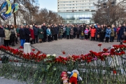 Сегодня мурманчане пришли к памятнику Жертвам интервенции, чтобы вместе почтить память погибших в результате трагедии с самолетом Sukhoi Superjet 100 в Шереметьево и возложить цветы.