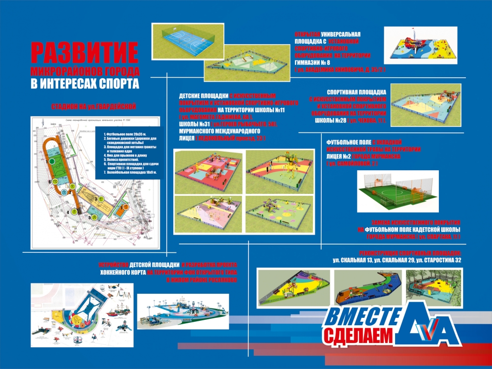 – На улице Гвардейской появится многофункциональный спортивный комплекс, – заверил мурманчан депутат Совета депутатов города Мурманска Виктор Хабаров. – Строительство открытого стадиона рядом с гимназией №8 запланировано на 2019-2020 годы.
