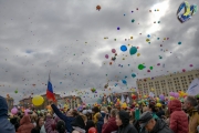 По традиции главный праздник был организован на площади Пять Углов. Началось мероприятие с массового флешмоба школьных знамён под открытым небом. В программе были поздравления, музыкальные номера, а также выступления творческих коллективов города.