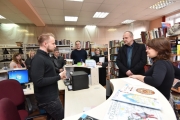 – Наша концепция модернизации библиотек заключается в том, чтобы они стали современными центрами культуры и были максимально востребованы мурманчанами, – отметил глава администрации города Мурманска Андрей Сысоев. – Что касается непосредственно филиала, в котором мы находимся, то очень важно, что он имеет ярко выраженную социальную направленность, тут работает социальный работник, который грамотно подберет литературу исходя из индивидуальных особенностей каждого человека.
