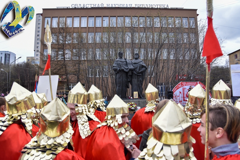 Мурманчане и гости заполярной столицы приняли участие в праздничном шествие и молебне у памятника Кириллу и Мефодию – создателям славянской азбуки.