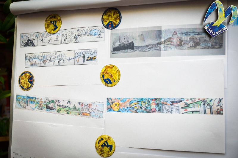 На конкурс поступило 14 заявок с творческими эскизами. Комиссия после долгих споров и обсуждений приняла решение присудить победу сразу двум работам. Первая – «Ни конца, ни края», Полины Рак, рассказывает о путешествии из Мурманска в Териберку и обратно. Вторая – «Солнечный год», Софьи Борисовой, Павла Ненашева и Анастасии Репиной иллюстрирует уникальные северные явления – Полярный день и Полярную ночь.