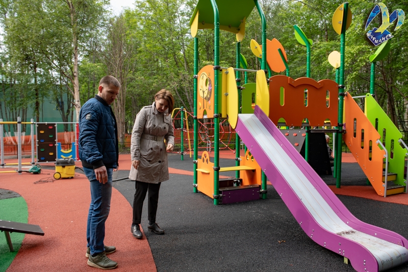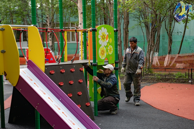 В настоящее время уже установлено игровое и спортивное оборудование, скамейки и урны, ведутся работы по укладке искусственного покрытия. Все оборудование сертифицировано, для безопасности юных мурманчан площадка покрыта резиновой крошкой, а в отдельных игровых зонах уложен дополнительный слой ударопоглощающего покрытия.