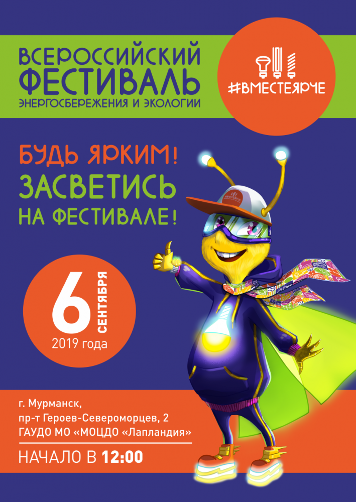 6 сентября в Центре дополнительного образования «Лапландия» состоится фестиваль #ВместеЯрче. Цель фестиваля – популяризация экологичного, энергосберегающего образа жизни, внедрения современных энергосберегающих технологий среди населения.