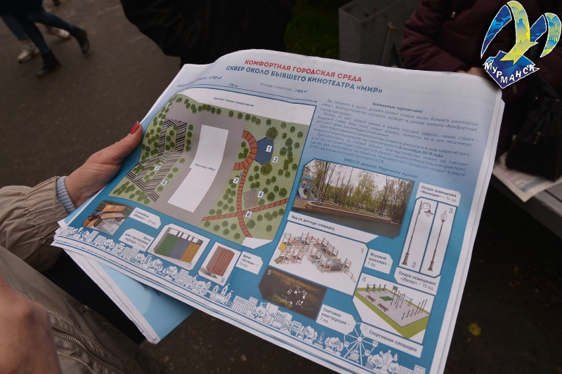 Возле бывшего кинотеатра «Мир» предлагается создать два пространства: одно – с детской и спортивной площадками, второе – тихое, с уютными лавочками и оригинальным освещением. Высказать свою позицию по этому вопросу мурманчане смогут 8 сентября в Единый день голосования.