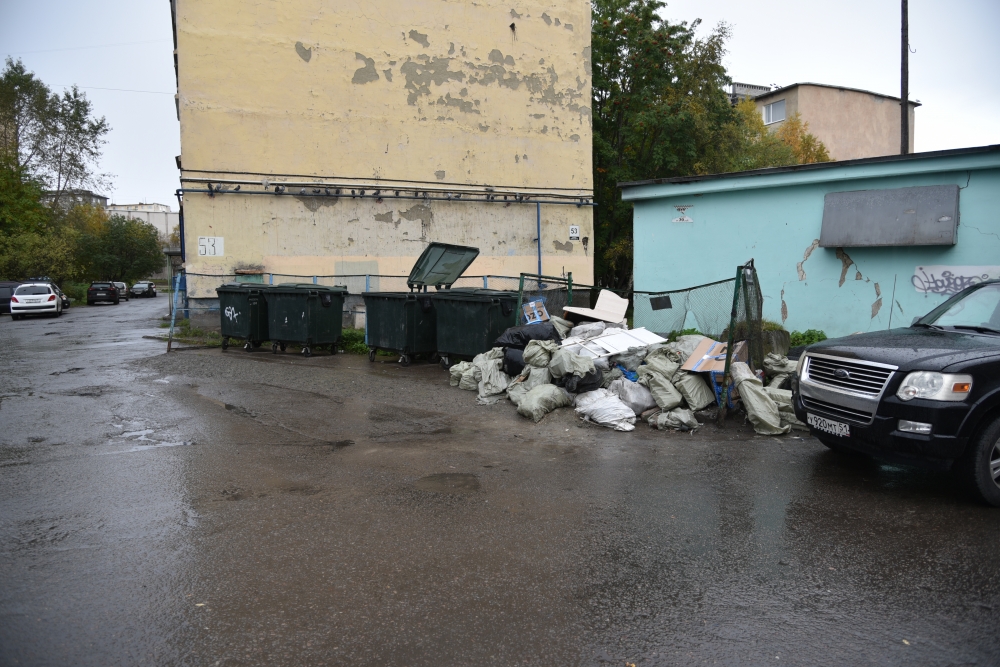 – В рамках избирательной компании мы встречались с жителями этого двора, – рассказал депутат Совета депутатов города Мурманска Виктор Хабаров. – Большинство жалоб касалось состояния контейнерной площадки, она не обустроена должным образом. Мы видим складирование строительных отходов на необорудованной для этого территории и как результат - захламление двора.