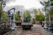 В настоящий момент выполнен весь комплекс подготовительных работ. Специалисты приступили к установке скульптур и архитектурных форм, оборудования на детских площадках, светотехнических элементов.