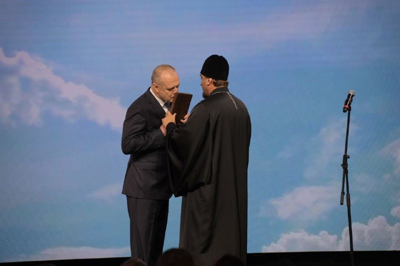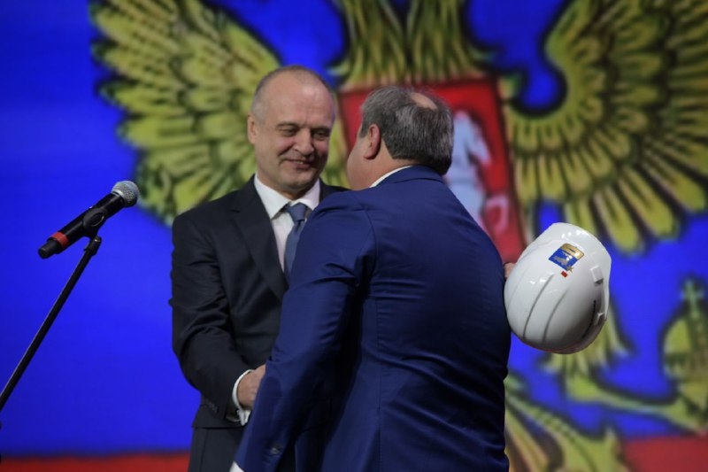 Поздравления и напутствия, прозвучавшие со сцены, дополнили памятные подарки: протоиерей Андрей Амелин от лица митрополита Мурманского и Мончегорского, главы Мурманской митрополии Митрофана и паствы вручил Андрею Сысоеву икону святого апостола Андрея Первозванного, Алексей Веллер преподнес символический сувенир – строительную каску, пожелав успехов в работе.