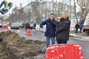 Сегодня глава муниципального образования город Мурманск Андрей Сысоев проконтролировал ход строительных работ, выполняемых на улице Челюскинцев (в районе прогимназии №61).