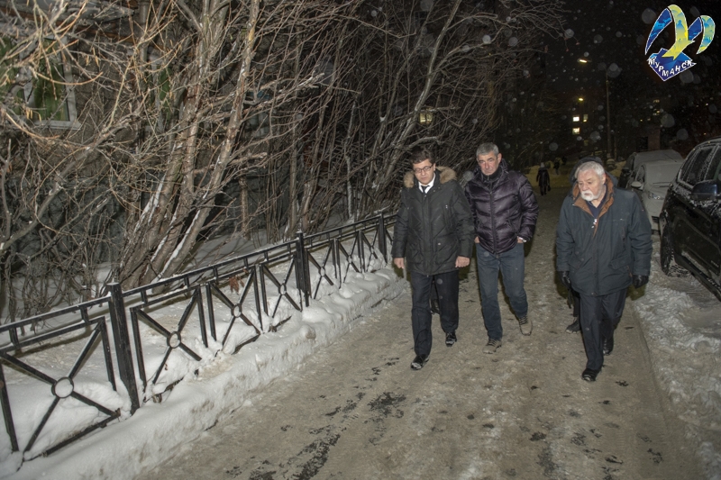 Сегодняшний день глава администрации города Мурманска Евгений Никора начал с проверки дворов домов №№5, 7 на улице Морской. С самого утра здесь идет уборка придомовых территорий.