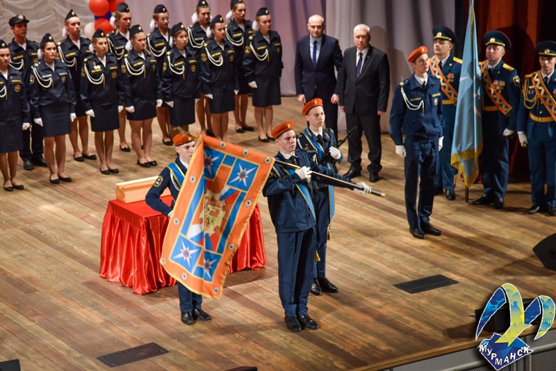 Сегодня в центре дополнительного образования «Лапландия» (ул. Героев-североморцев,2) состоялась торжественная церемония вручения знамени кадетов МЧС России Кадетской школе города Мурманска.