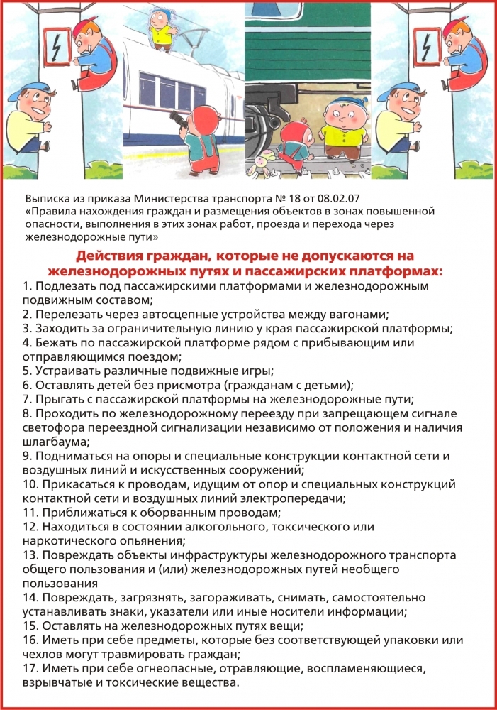 Действия граждан, которые не допускаются на железнодорожных путях и пассажирских платформах: