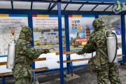 В Мурманске для предотвращения распространения новой коронавирусной инфекции продолжается дезинфекция мест массового пользования.