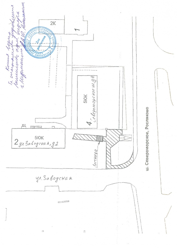 Управление Ленинского административного округа г. Мурманска просит владельцев следующих объектов: железобетонной лестницы и тротуара с асфальтобетонным покрытием в районе МКД 2 по улице Заводской и МКД 4 по Североморскому шоссе, тротуара с торцевого фасада МКД 1 по ул. Советской, тротуара от дома 5А по улице Приморской до ул. Заводской, проезда и тротуара от ул. Советской до территории АО «82 СРЗ», расположенных на территории района Росляково города Мурманска, в течение месяца (со дня опубликования объявления) представить правоустанавливающие документы на данные объекты и занимаемые земельные участки в управление Ленинского административного округа города Мурманска по адресу: район Росляково, ул. Заводская, д. 3, контактные телефоны: 47-05-16, 47-16-48.