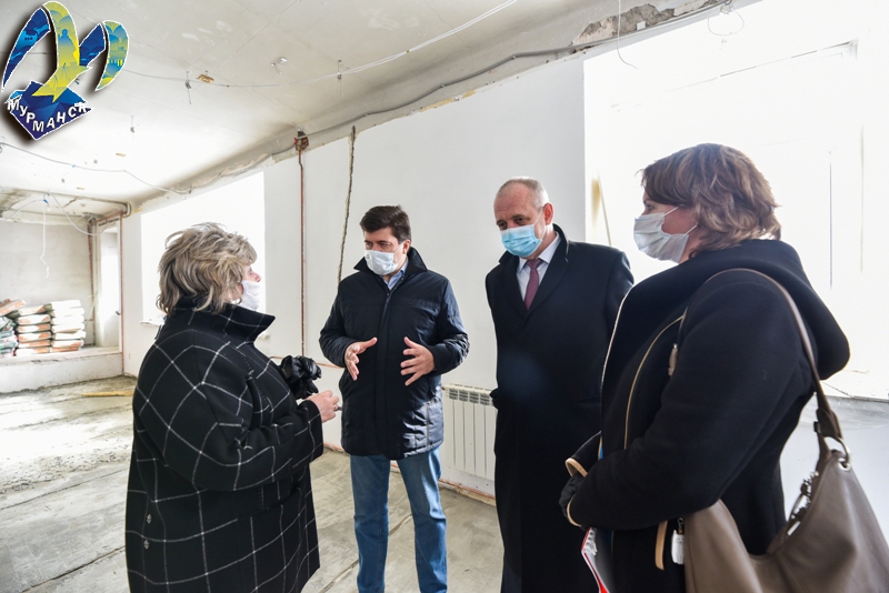 Сегодня глава муниципального образования город Мурманск Андрей Сысоев и глава администрации города Мурманска Евгений Никора проверили ход ремонтных работ в библиотеке на проспекте Ленина, 94.