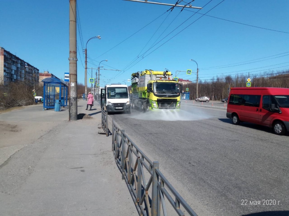 В 00:00 ММБУ «Управление дорожного хозяйства» начнет проводить профилактическую дезинфекцию подходов к пешеходным переходам, расположенным вблизи посадочных площадок остановок общественного транспорта, лестниц, находящихся в ведении детских площадок и участков тротуаров с интенсивным пешеходным движением в Октябрьском округе города Мурманска.