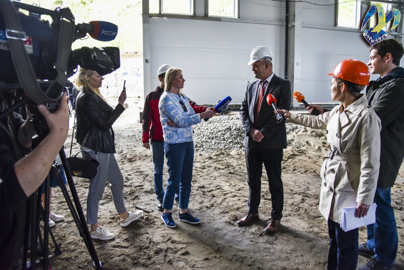Сегодня глава муниципального образования город Мурманск Андрей Сысоев, глава администрации города Мурманска Евгений Никора и заместитель председателя Совета депутатов города Мурманска Игорь Морарь проконтролировали ход строительства нового спорткомплекса с искусственным льдом «Метеор» (ул. Капитана Орликовой, 9).