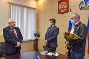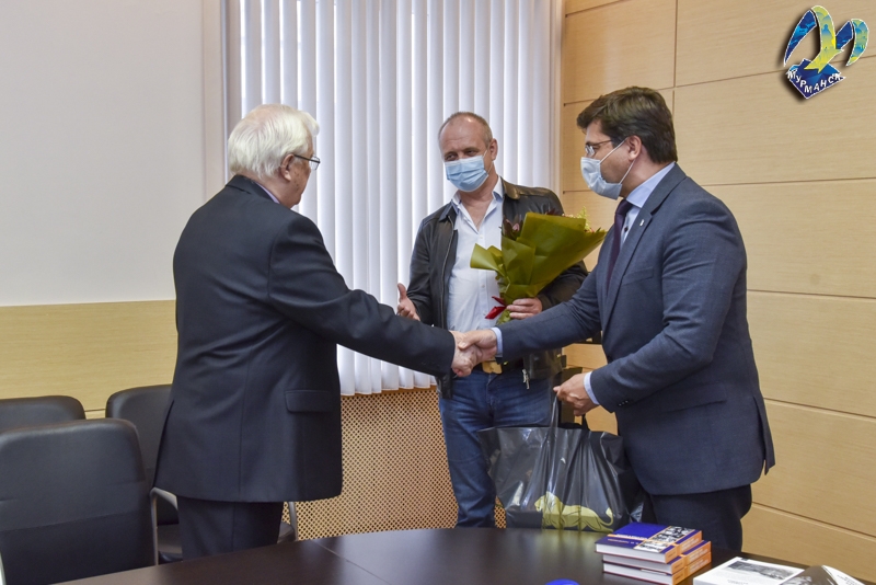 Сегодня почетный гражданин города-героя Мурманска Владимир Горячкин вручил именные экземпляры своей новой книги руководству города.