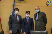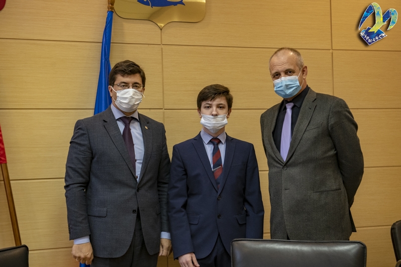 Сегодня глава муниципального образования город Мурманск Андрей Сысоев и глава администрации города Мурманска Евгений Никора встретились с выпускником Мурманского академического лицея Сергеем Савиным.