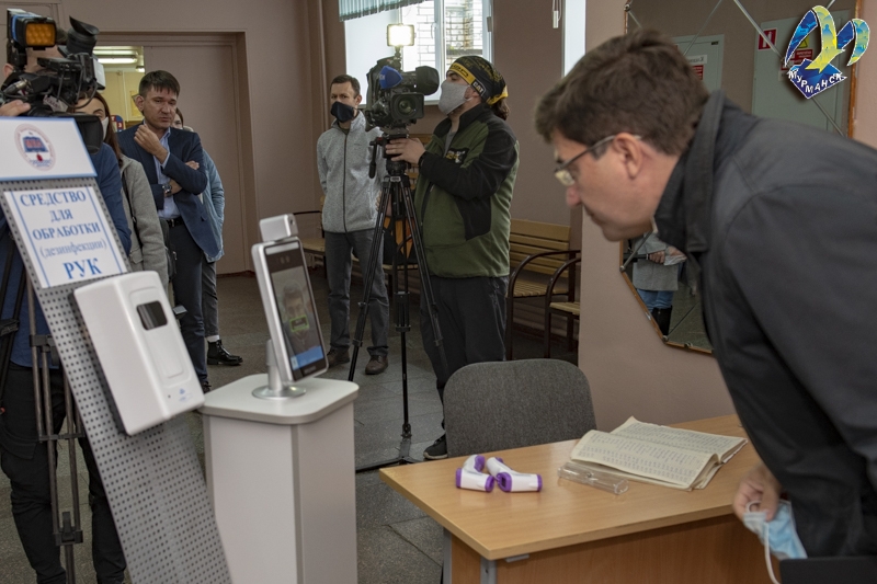 Сегодня глава администрации города Мурманска Евгений Никора лично проверил работу новой системы дистанционной термометрии.