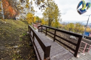 Для удобного подхода со стороны жилых домов по улице Туристов выполнено устройство лестницы с деревянным настилом, а со стороны улицы Загородной появились пешеходные дорожки из брусчатки. Сама площадка обустроена скамейками, урнами и современным освещением. Кроме того, на территории игрового комплекса расположены 4 камеры системы видеонаблюдения, подключенных к АПК «Профилактика преступлений и правонарушений».