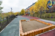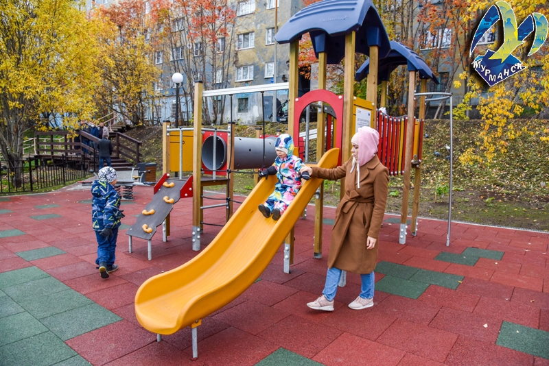 В Мурманске по адресу ул. Туристов, 29а появилась современная детская игровая площадка. Благоустроенная зона отдыха стала результатом взаимодействия администрации областного центра с АО «Мурманский морской торговый порт» и фондом «СУЭК – Регионам».