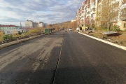 В Мурманске на дороге по улице Загородной начали укладывать верхний слой асфальта. В процессе задействованы 16 человек и 9 единиц техники.