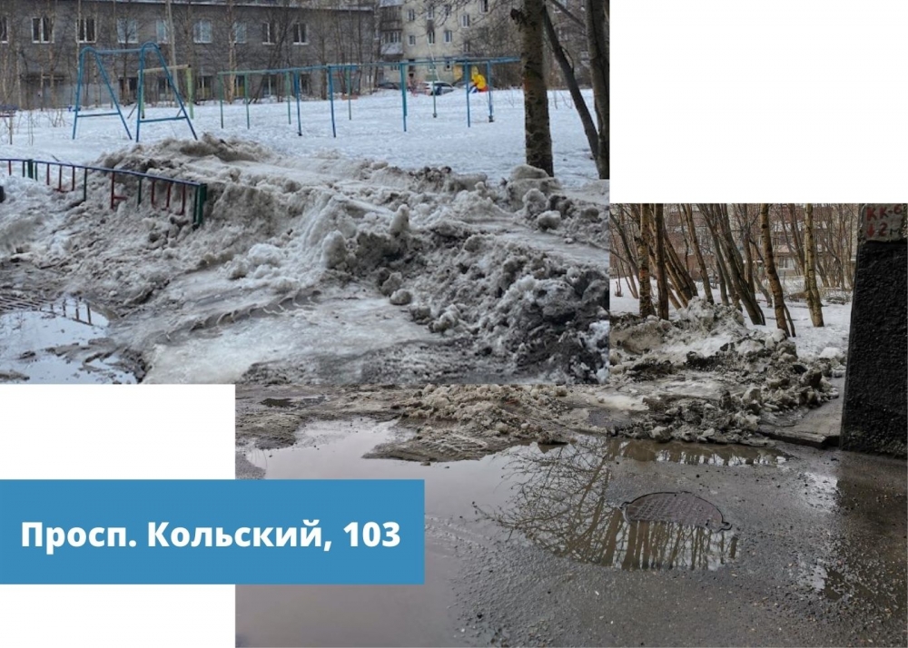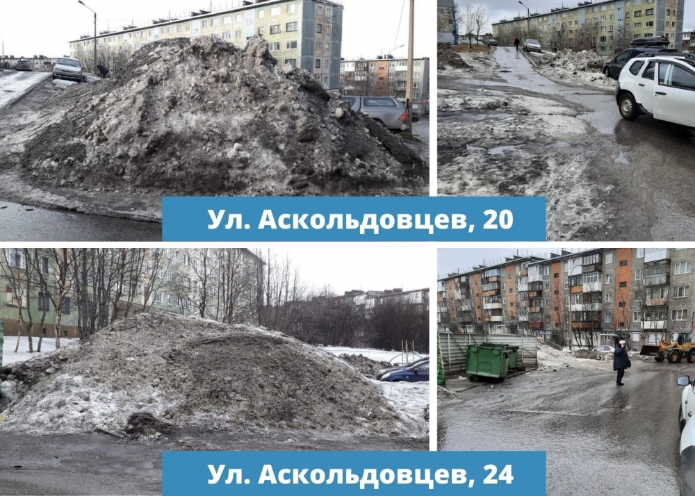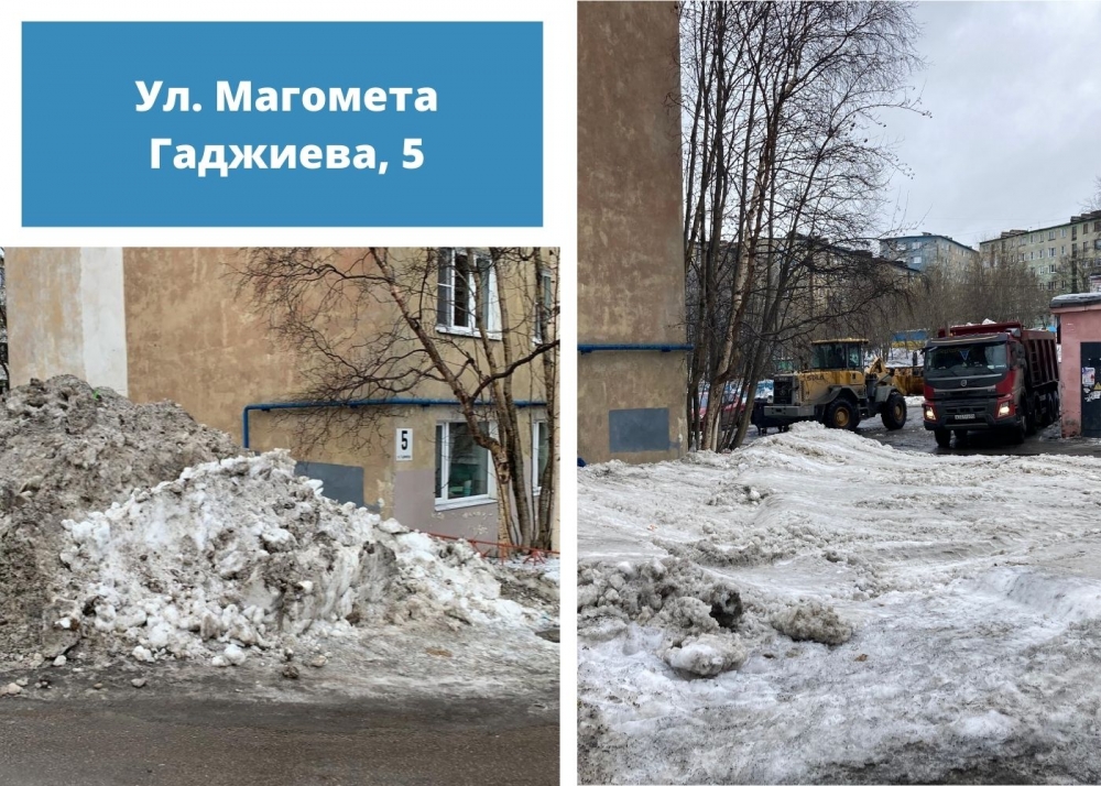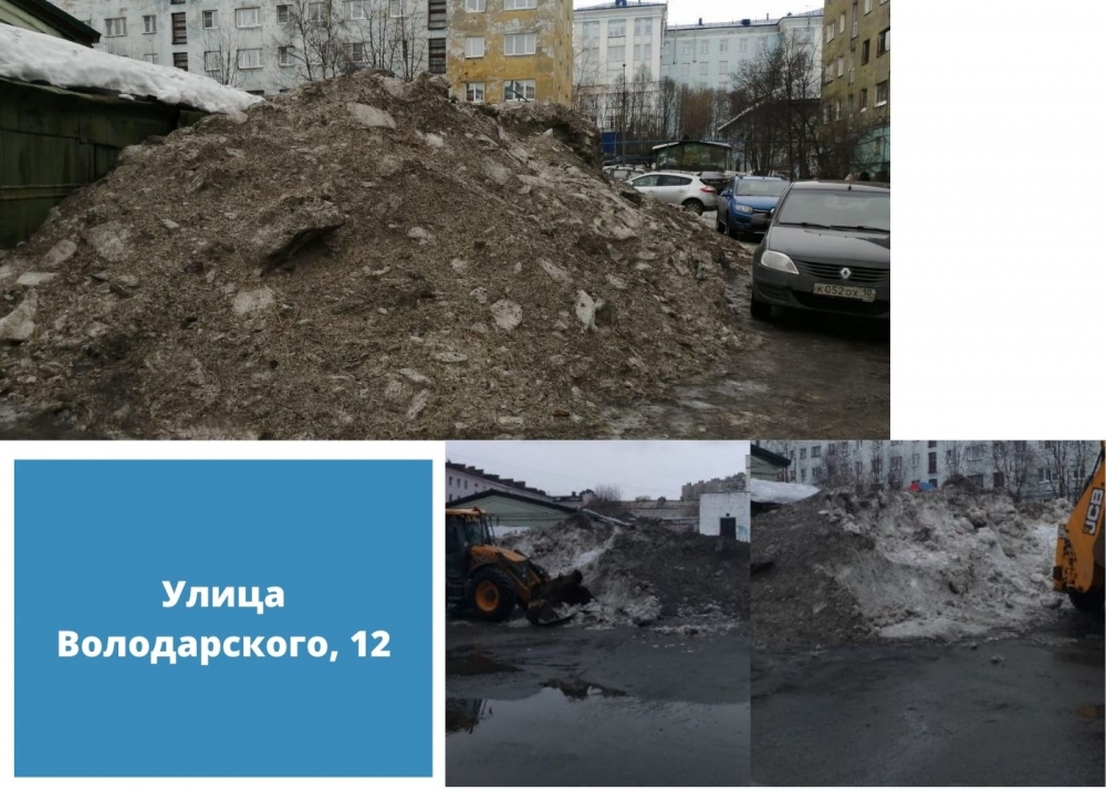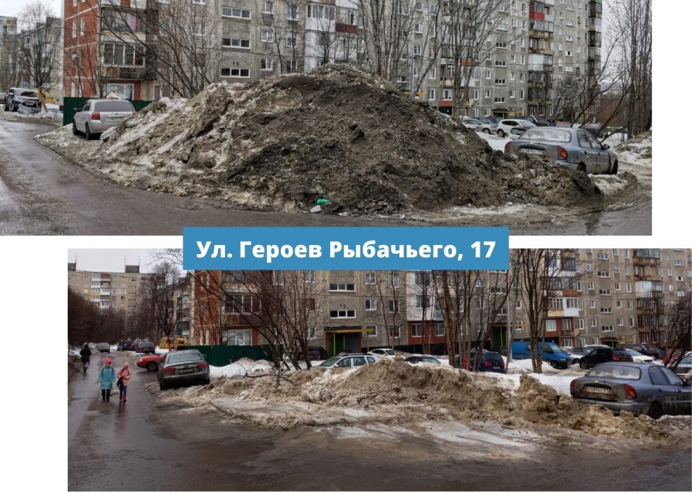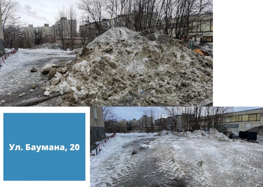 Так на придомовых территориях нескольких дворов вывоз снега до сих пор не осуществлен. Профильными структурными подразделениями администрации областного центра принимаются все возможные меры для воздействия на организации, занимающиеся содержанием общедомового имущества. Ситуация находится на личном контроле главы администрации города Мурманска Евгения Никоры.