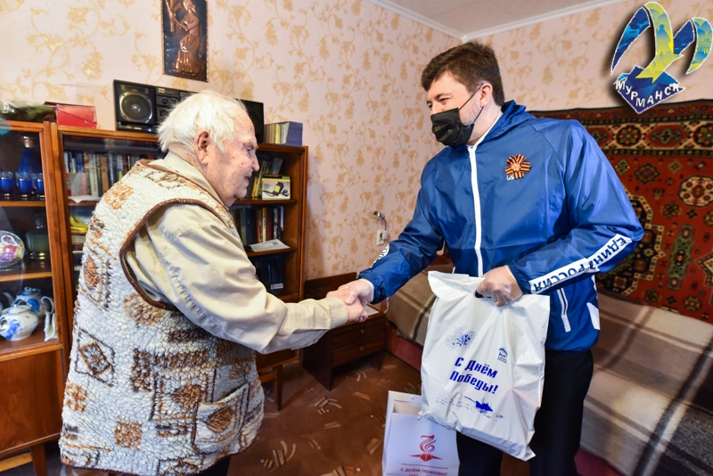 Сегодня в праздничной акции принял участие глава администрации города Мурманска Евгений Никора. Он приехал поздравить Александра Васильевича Яшина, который был призван на фронт в 1943 году, служил минером, матросом на Северном флоте во флотском экипаже, в учебном отряде бригады сторожевых кораблей главной базы Северного флота, на эсминце «Жгучий». Александр Васильевич награжден орденами Трудовой Славы III степени, Отечественной войны, медалями «За оборону Советского Заполярья», «За победу над Германией», медалью Жукова, «За доблестный труд».