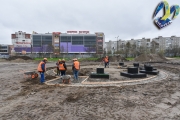 Общая площадь благоустройства территории составит более 12 тысяч квадратных метров. Подрядчик проводит работы по устройству траншей под видеонаблюдение и электроснабжение, оснований пешеходных дорожек и монолитных фундаментов сценического комплекса.