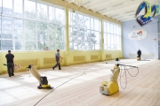 Работы выходят на финальный этап: обновлены стены помещения, восстанавливается напольное покрытие, завершается ремонт раздевалок. Также будет заменено оборудование в медицинском кабинете.