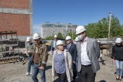 Сейчас на строительной площадке ведутся работы по укладке бетонной смеси в опалубки, изготовлению арматурных каркасов подпорной стенки, монтажу плит перекрытий, а также внутренних и наружных систем электроснабжения.