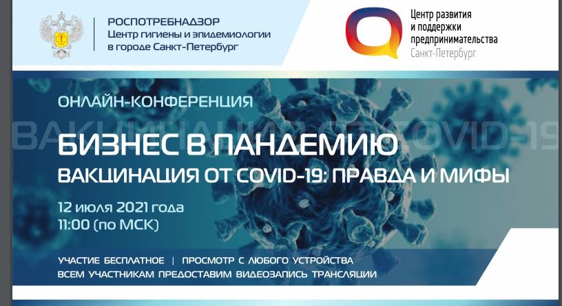 В связи с обострением эпидемиологической ситуации, связанной с COVID-19 ФБУЗ «Центр гигиены и эпидемиологии в городе Санкт-Петербург» Роспотребнадзора проведет онлайн-конференцию для предпринимателей и работников сферы услуг «Вакцинация от COVID-19. Правда и мифы».