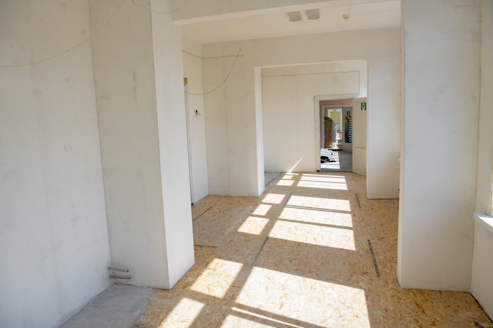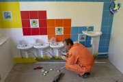 В настоящее время в туалетных и буфетных, пищеблоке и прачечной произведена укладка кафельной плитки на стенах и полах. Заменена система отопления с установкой новых приборов, выполнена прокладка труб водоснабжения и водоотведения. Ведутся работы по установке сантехнических приборов.