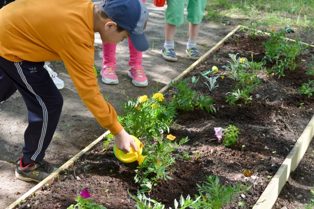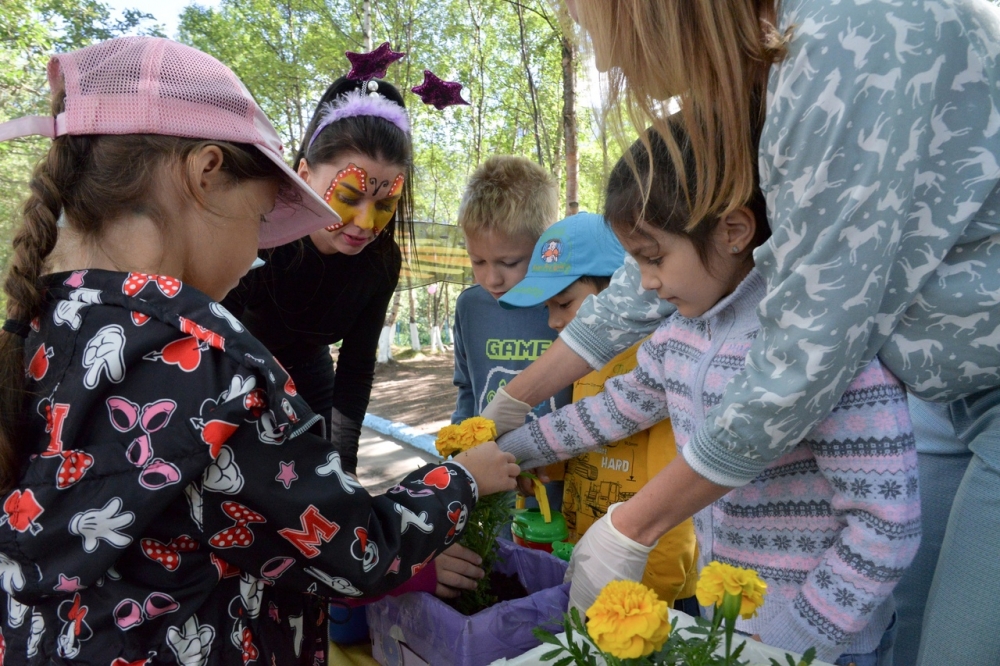 Сегодня в рамках этого проекта состоялась экологическая акция «Цветами улыбается Земля!». Вместе с воспитателями малыши высаживали цветы, которые теперь будут радовать ребят и взрослых. Яркие бархатцы теперь живут на клумбе, оформленной в виде веселого паровоза.
