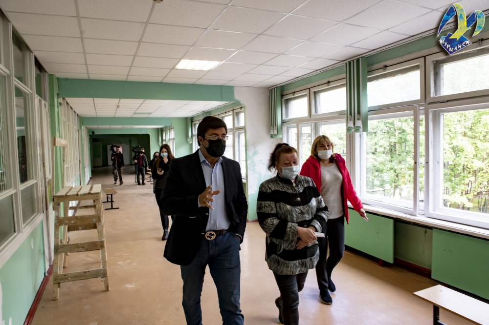 Сегодня глава администрации города Мурманска Евгений Никора проверил готовность гимназии № 6 (ул. Беринга,18) к новому учебному сезону.